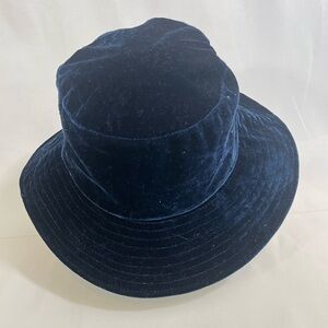 Anthropologie Dark Blue Velvet Bucket Hat
