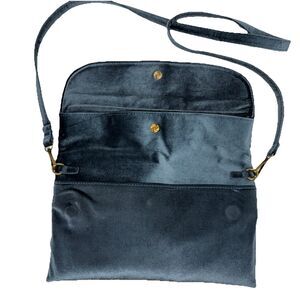 This bag features a combination of corded velvet on the fold-over flap and smooth velvet on the main body. It is designed with an adjustable and removable strap, allowing it to be used as a shoulder bag, crossbody bag, or a clutch.