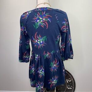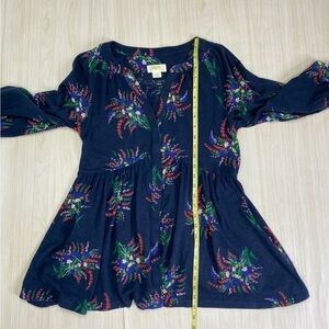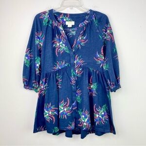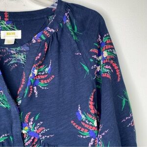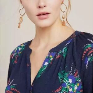 Anthropologie Blue V-neck tropical stretch knit top size M