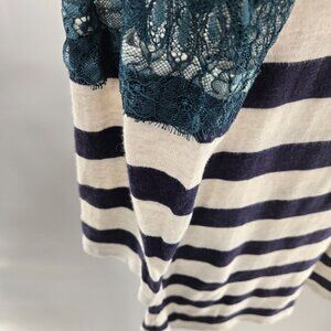 Anthropologie Blue White Striped Lace and Lines Pullover Long Sleeved Top