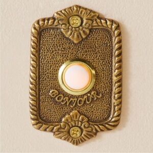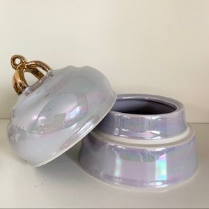 White ceramic with blue flowers and silver trim on face. Have nice heft to them. Think these may be called the Louella knob.
