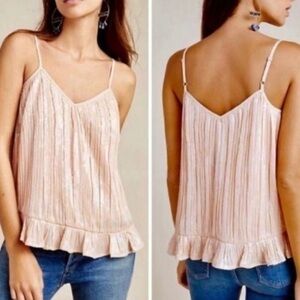 Great top for your next party! Anthropologie Blush Sequin Spaghetti Strap Top.