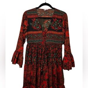 Anthropologie Boemo Boho Tiered Floral Dress Size Large Petite