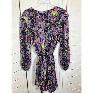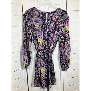 Anthropologie Bohemian Buttons Down Mini Dress Long Sleeves Size XXS Paisley