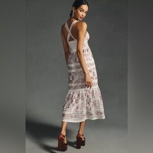 Anthropologie Bohemian Floral Embroidered Tiered V-Neck Dress