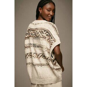 Anthropologie Bohemian Knit Cardigan Sweater L Button Front Short Sleeve Beige