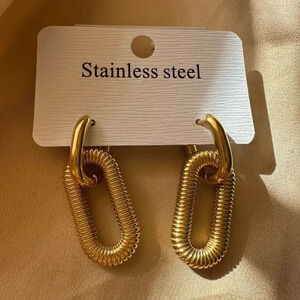 Anthropologie Bohemian Stainless Steel Gold Buckle Hoop Hollow Drop Earrings