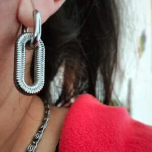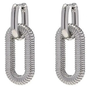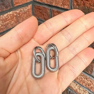 Anthropologie Bohemian Stainless Steel Silver Buckle Hoop Hollow Drop Earrings