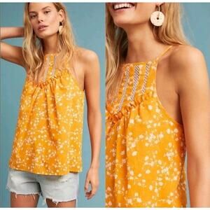 Anthropologie Boho Maeve Martell Yellow Tank Top Women’s L Floral Cotton Shirt