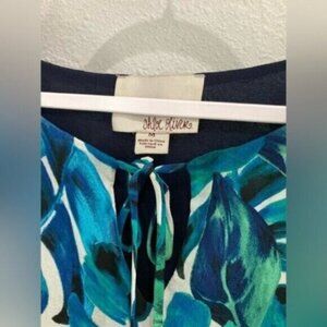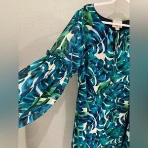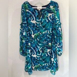 Anthropologie Chloe Oliver Parterre Boho Palm Print Tropical Beach Cruise Swing Bright Knee Length Dress