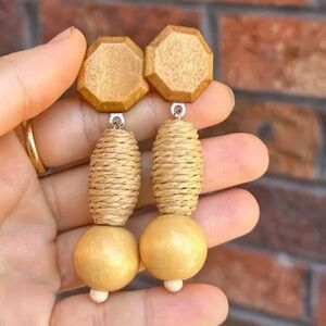 Anthropologie Boho Wooden Ethnic Drop Earrings