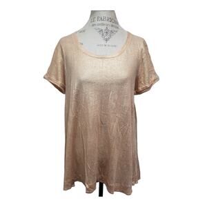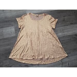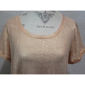 Anthropologie Bordeaux Shimmery Gold Metallic High Low Short Sleeve Blouse Top
