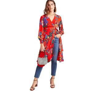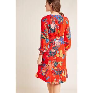 Anthropologie Boswell Textured Wrap Red Tunic Dress Size 2