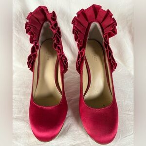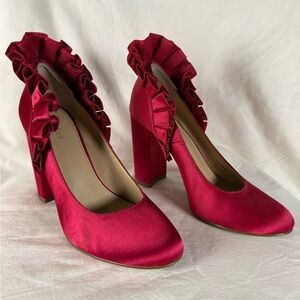 Anthropologie Botkier Raspberry Pink Satin Ruffle Vienna Block Heels 6