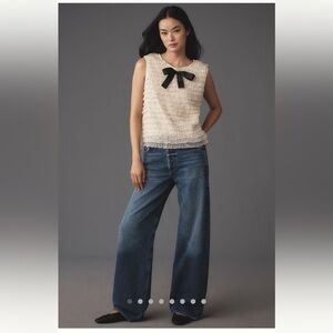 Chic cream ruffle top. Features a stylish black bow. Perfect for versatile wear.