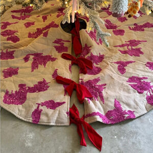 Anthropologie Bows Dorsey Tree Skirt Velvet embroidered large holiday Christmas