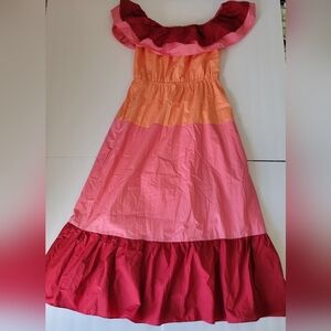 Anthropologie Brand English Factory Colorblock Off Shoulder Tiered Maxi Dress