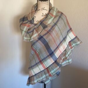 Gorgeous Anthropologie Plaid 100% Acrylic Scarf, brand new with tags. Ruffled hem, can be looped around the neck or styled as a wrap, view all photos for best representation. Boho, plaid, feminine, contemporary, new, accessory, scarf, event, party, casual, comfy, acrylic