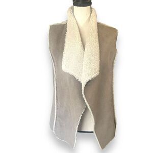 Anthropologie Brand THML Faux Fur Suede Draped Front Vest Tan Size Medium