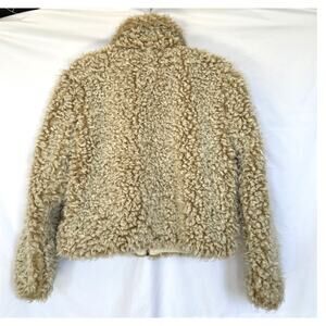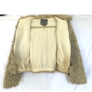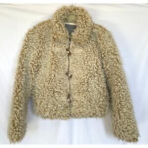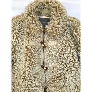 Anthropologie Brenna Cream Faux Shearling Fur Toggle Zip Short Coat, Medium