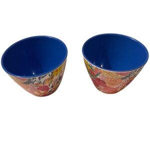 Anthropologie Bridgette Thornton Melamine Paint + Petals 2 Snack Bowls NEW