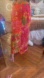 Bold orange dress with floral design. Eye-catching and chic. Ideal for any event.