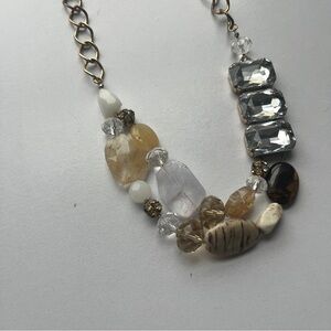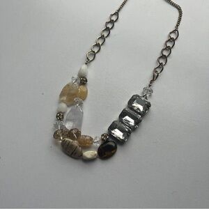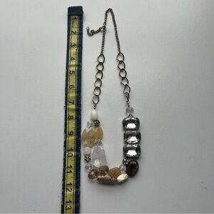 Anthropologie Brown Beaded & Silver Gem Adjustable Necklace