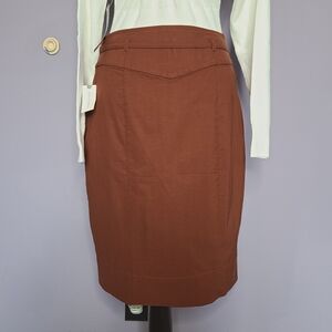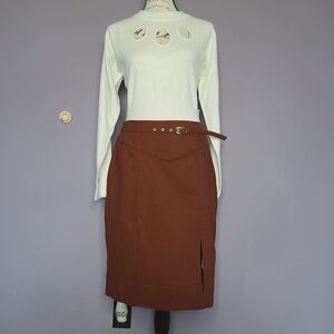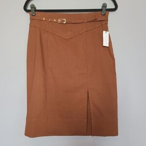 Anthropologie fitted silhouette brown belted pencil skirt. Belt is adjustable and removable. Skirt is well structured, fabric is soft and lightweight. Front side slit. Size medium, waist measures at 30 inches, hip at 38. Full skirt length is 23 inches.