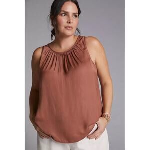 Anthropologie Brown Draped Low-Back Sleeveless Blouse ~ 1X Plus, NEW