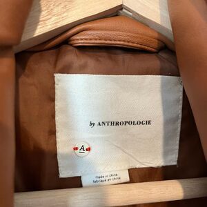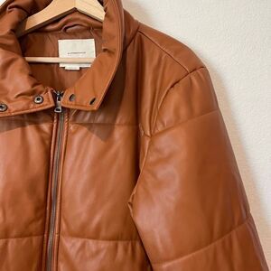 By Anthropologie Brown Faux Leather Full Zip-Up Puffer Jacket Coat Women's