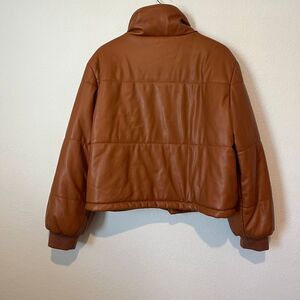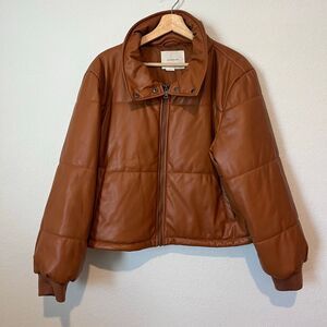 Anthropologie Brown Faux Leather Full Zip-Up Puffer Jacket Coat Women's L/XL