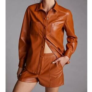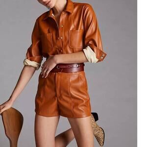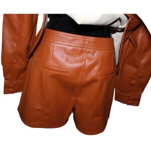 Anthropologie Brown Faux Leather Top Bottom Shorts Set ~ size 10