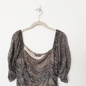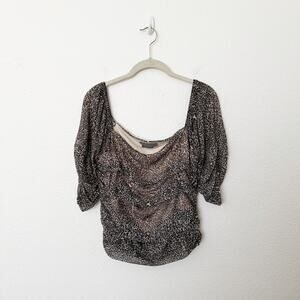 Anthropologie Sz Large L Brown Leopard Print Ruched Mesh Off the Shoulder Blouse