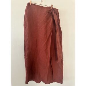 Anthropologie Brown Linen Blend Wrap Style Maxi Skirt Size Medium