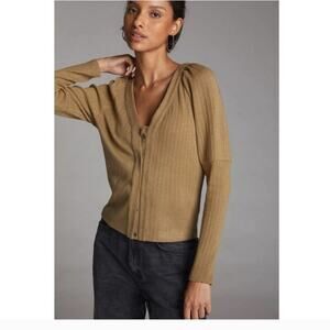 Anthropologie Brown Olive Snap Button Cardigan Sweater