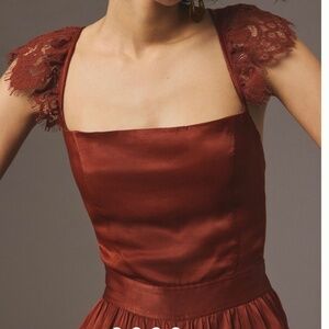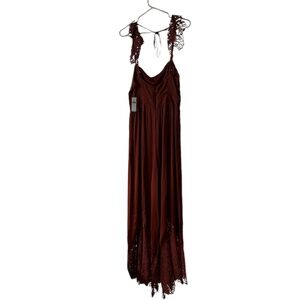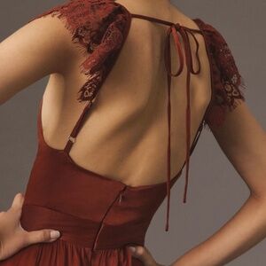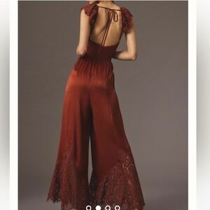 Anthropologie Brown Satin Feel with Lace Wide Leg Jumpsuit in Brown Size 6. NWT