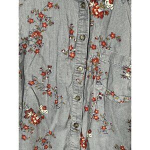 Anthropologie Building 18 Corduroy Floral Button Down Shirt Women's Size 4 Top