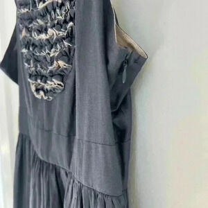 Anthropologie Burlapp Eyeleted Islands Silk Blend Dress Sleeveless Ruffled . Adjustable Straps