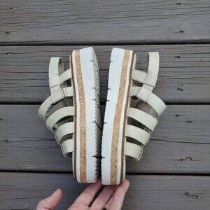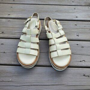 Anthropologie Bussola Cream Leather Platform Gladiator Caged Jesus Sandals 40