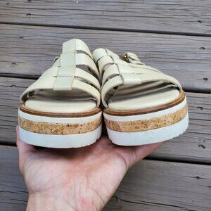 Anthropologie Bussola Cream Leather Platform Gladiator Caged Jesus Sandals