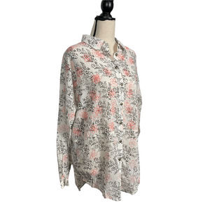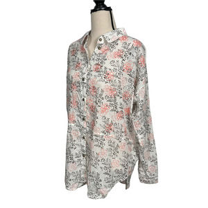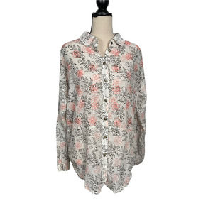 Anthropologie Button Front Floral Embroidered Semi-Sheer Top Size XS/S