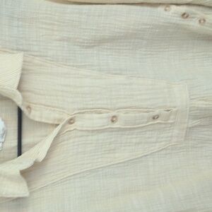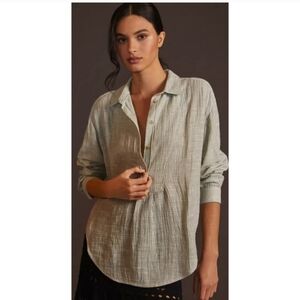 Anthropologie Button Side Striped Textured Shirt, Women's Plus Size Small Cotton