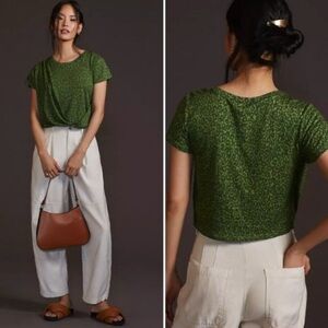 Anthropologie By Anthropologie Draped Tee Green Motif Size Small NWT New $68