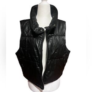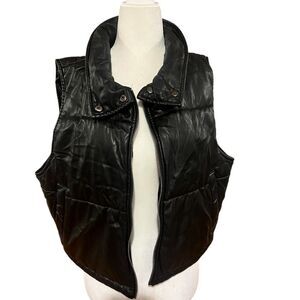 Anthropologie By Anthropologie Faux-Leather Puffer Vest womens size Med black