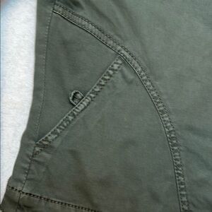 This Anthropologie utility jacket combines a plush cream sherpa collar with a durable green body, offering a stylish and functional outerwear piece. Its fitted silhouette and waist-length design make it perfect for casual outings. The sturdy fabric ensures both comfort and longevity.