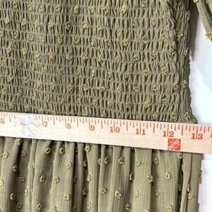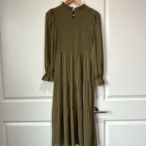 Anthropologie By The River Dot Swiss Smocked Tiered Midi Dress Olive Gre…