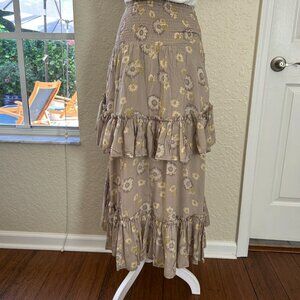 Anthropologie By Together Tiered Ruffle Beige Floral Skirt