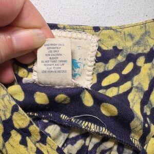 The Anthropologie C KEER Spin Art Tank Dress is a stylish and versatile piece perfect for a variety of occasions. This knee-length dress features a geometric blue and green/yellow pattern, a sleeveless design with a V-neckline, and a tie waist closure for a flattering fit. Made from viscose knit fabric, this dress is comfortable and stretchy, making it ideal for travel, weddings, casual outings, workwear, or business meetings. The classic yet boho style of the dress adds a touch of personality to your wardrobe, suitable for wearing all year round.