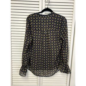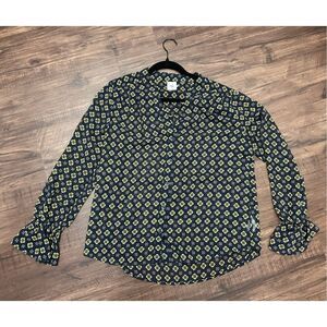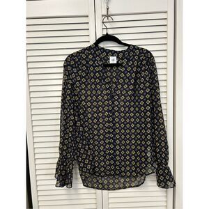 Anthropologie CAbi Mosaic Blouse Blue Yellow Top #3773 Size Medium, MSRP $89