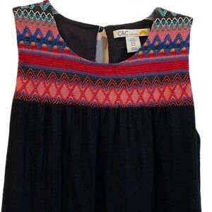 Anthropologie C&C California Mini Black Dress with Colorful Embroidery. Size XS